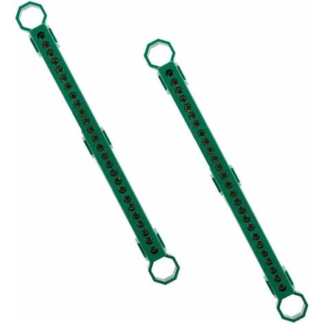 Bornier de terre de couleur verte 28 connexions, indispensable pour toutes vos installations électriques. Détail des connexions: 4x 6-25mm² et 24x 1.5-4mm². Intensité 100A maxi avec arrivée 25 mm². Puissance: 400V. Résistance du matériau isolant à la chaleur et au feu 850°C. Norme CE.