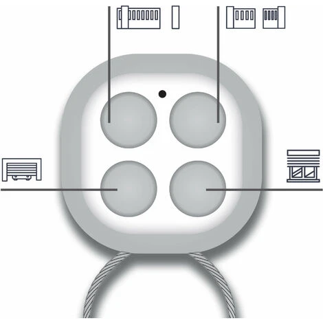 - La télécommande à quatre boutons avec son cordon en métal pour porte-clé.