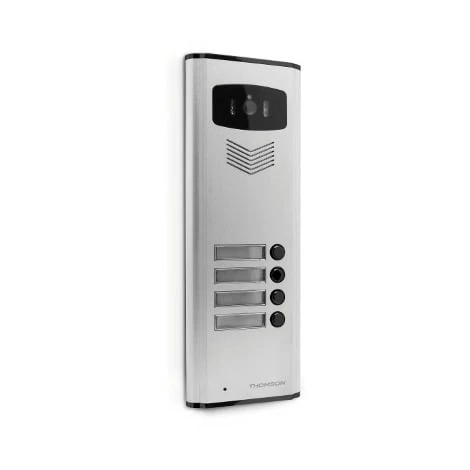 Ce concept Multi Home permet de gérer l?accès aux différents logements d?un même immeuble. Chaque habitant peut contrôler individuellement ses visites. C?est la solution idéale pour équiper un petit immeuble. Composition du produit : ? 1 platine de rue vidéo Multi Home équipée de 4 porte-nomsrétro éclairés. ? Vis et chevilles fournies